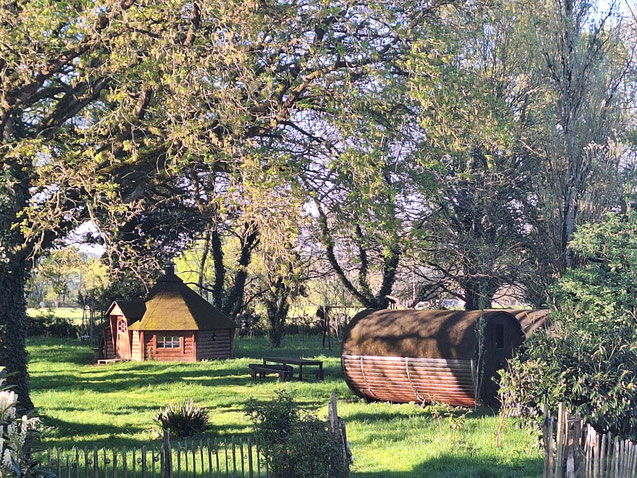 Selon vos besoins, le tonneau est composé d'un lit double avec matelas de 20 cm ( la photo est ancienne ;), un lit simple au même niveau que le lit double ( pour du cododo par exemple ou un adulte ) et un lit en hauteur avec barrière de sécurité ( enfant et adulte de moins de 60 kg ), alaises pour chaque matelas, couettes et oreillers anti allergies avec protection, Une table escamotable sous le lit qui peut se placer entre les 2 bancs du sas d'entrée , une lampe rechargeable, prise électrique et chauffage à la demande, 2 sièges extérieurs abrités permettent de profiter de la vue . Vous trouverez dans le jardin une aire de jeux pour les enfants avec tobogan, grand trampoline avec filet de sécurité et une cabane à jeux, un Kota pour les réunions  si vous venez sur plusieurs hébergements en privatisé. Vous aurez également accès à une cuisine avec frigo, lave-vaisselle, plaques à induction, micro-onde, bouilloire et toute la vaisselle  ( vous pourrez manger dedans ou pique-niquer dans les différents espaces du jardin aménagés à cet effet). Cabine de douche spacieuse et lavabo dans bloc sanitaire à 20m à eau chaude et point électrique, eau froide potable en extérieur et  toilettes sèches à 10 m .